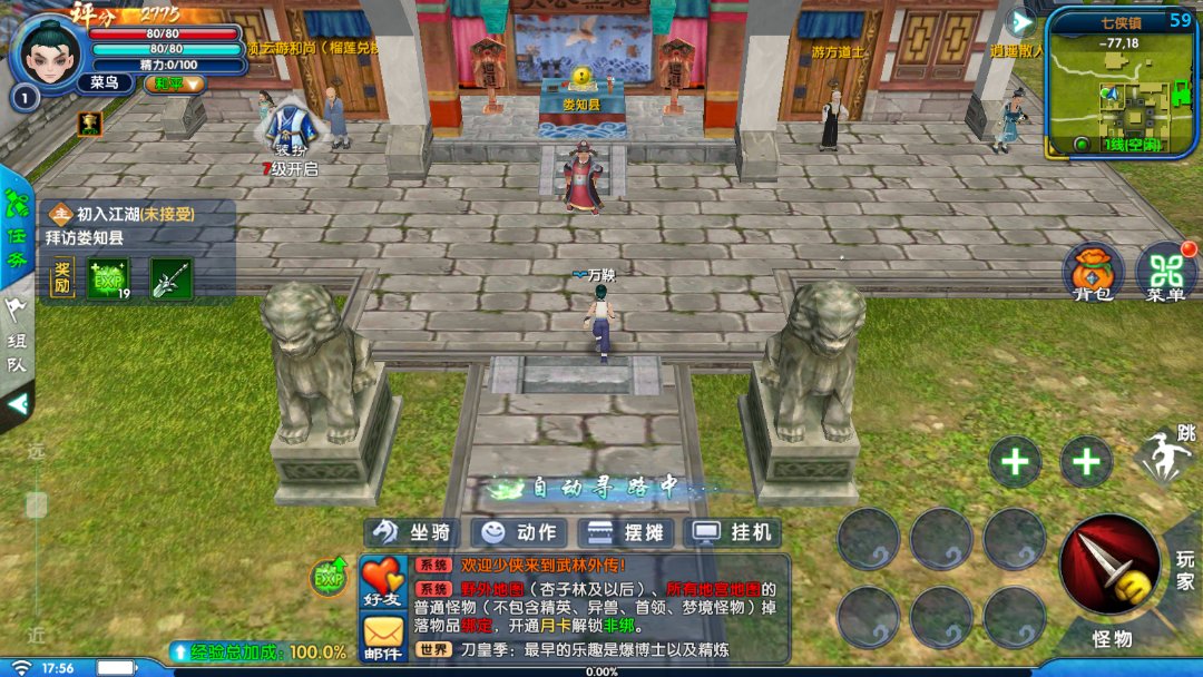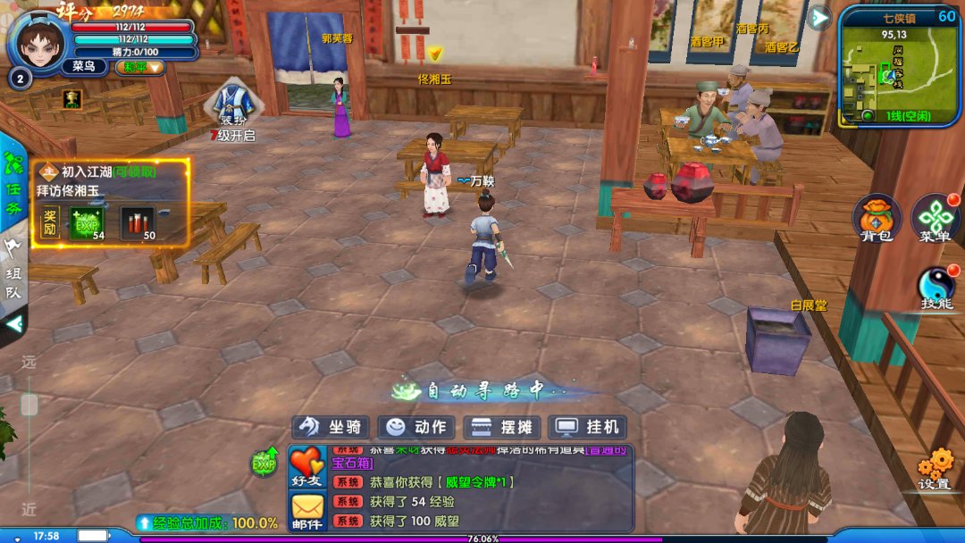 2. 休闲经营与趣味互动:游戏将同福客栈的“经商之道”融入玩法,玩家可打理同福客栈,升级设施、研发菜品、应对佟掌柜查账,经营成果还能反哺角色属性;同时,帮派成员可合开酒馆、镖局,通过定价策略、客源管理争夺七侠镇“商业霸主”称号,获胜帮派可获得专属坐骑“赤兔马”。此外,游戏还有押镖/劫镖、偷面小游戏、无厘头隐士问答等趣味玩法,轻功探索系统突破地图限制,玩家可从七侠镇屋顶一路飞到十八里铺山顶,途中还能触发随机事件,完成后可获得“江湖声望”,兑换稀有称号。